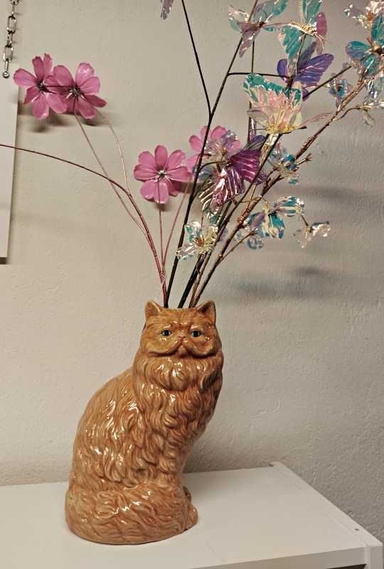 Deze vaas in de vorm van een kat is een echte blikvanger.