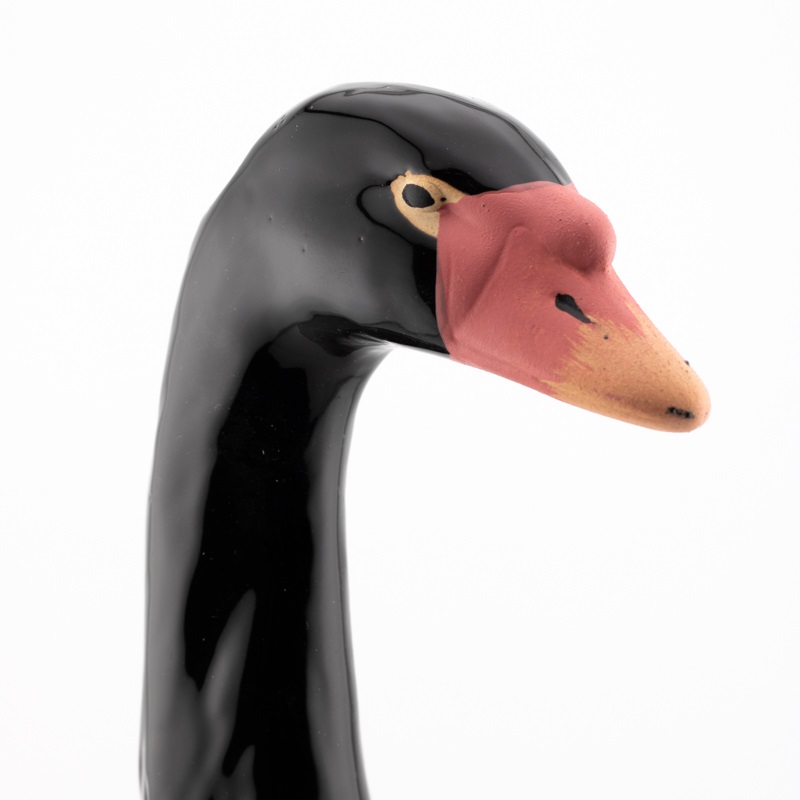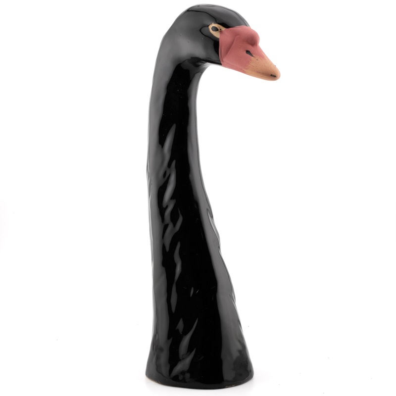 De slanke, hoge vorm en de zwarte glanzende afwerking geven de vaas een elegante en moderne uitstraling. De subtiele details in de kop en snavel zorgen voor een speels accent.