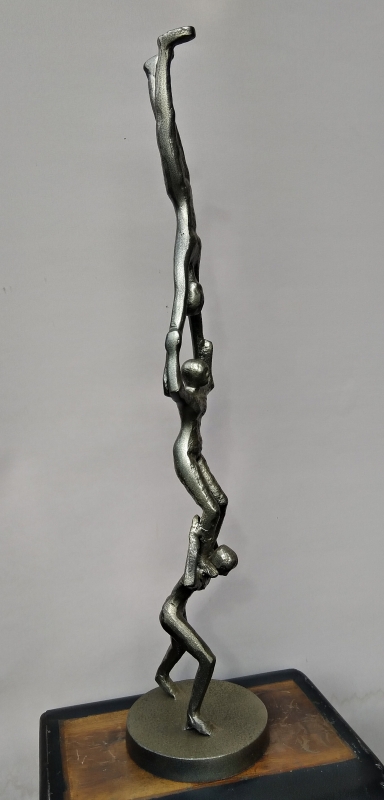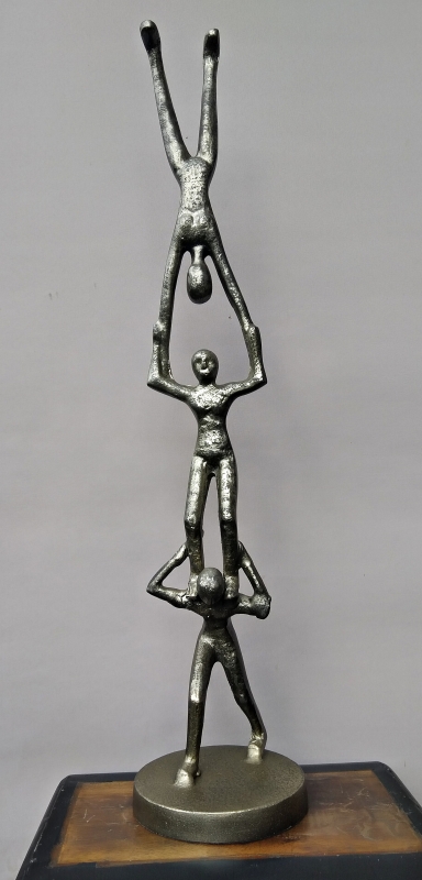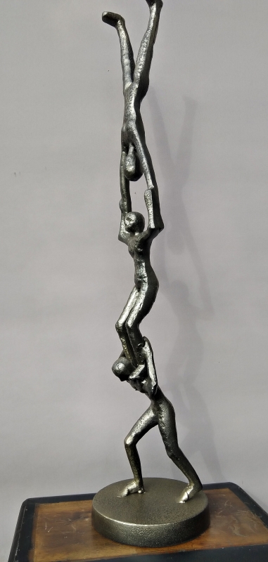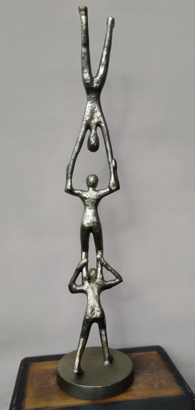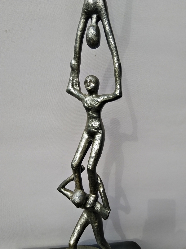 Aluminium beeld handstand teamwork 3 personen