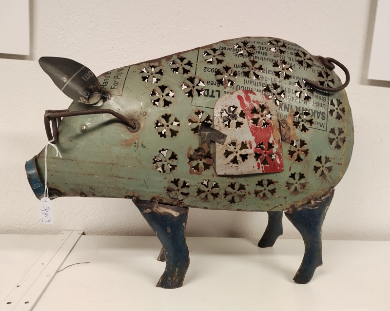 Aangezien deze varkens met de hand zijngemaakt van oud blik kan het zijn dat het door u gekochte varken iets afwijkt van het varken van de foto's.