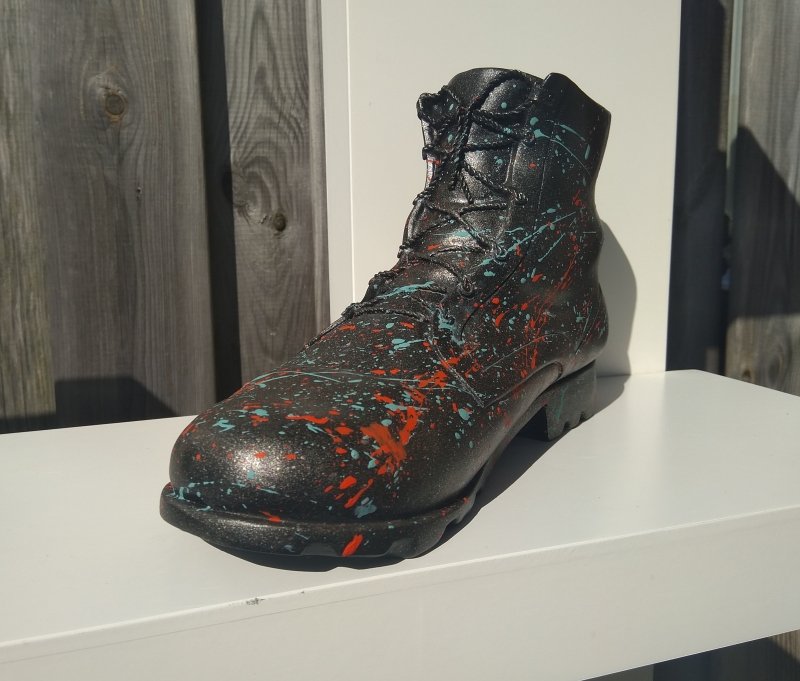 Decoratieve schoen die zowel kan staan als aan de wand opgehangen.