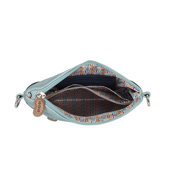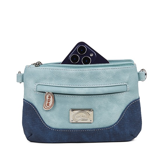 Ook de binnenkant is handig: met een open vak, ritsvak en 4 vakjes voor je creditcards doet hij ook dienst als portemonnee. Aan de achterkant heb je een extra ritsvak voor je sleutels. De hele tas is groot genoeg voor onder andere je mobiele telefoon.