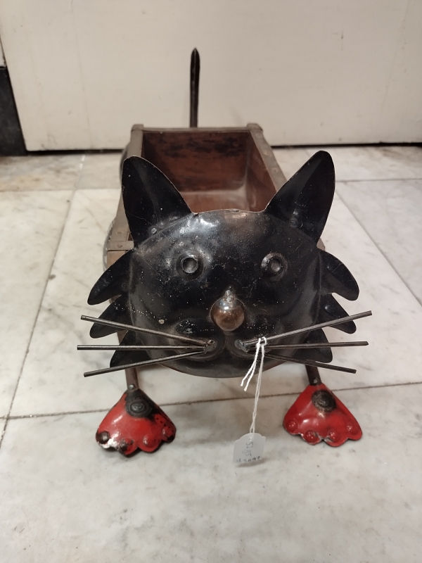 Kat van steenmal en gerecycled blik