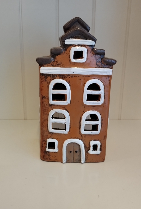 Breng kleur in uw interieur met dit stijlvolle oranjebruine decoratiehuisje.