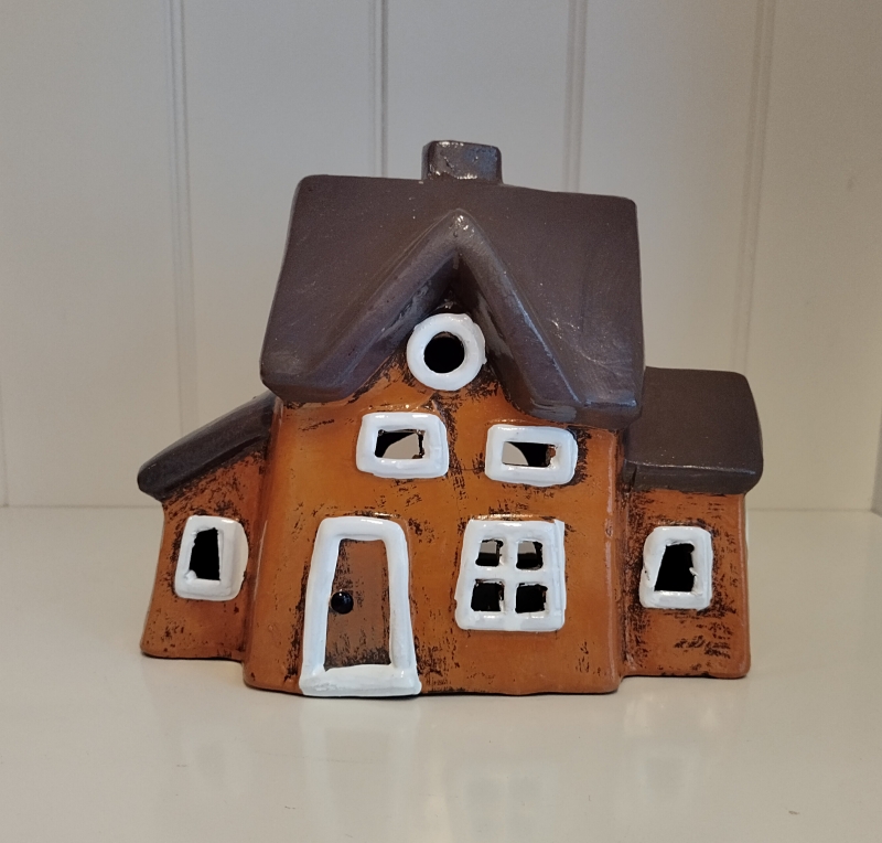 Voeg een speelse touch toe aan je interieur met dit opvallende oranjebruine decoratiehuisje.