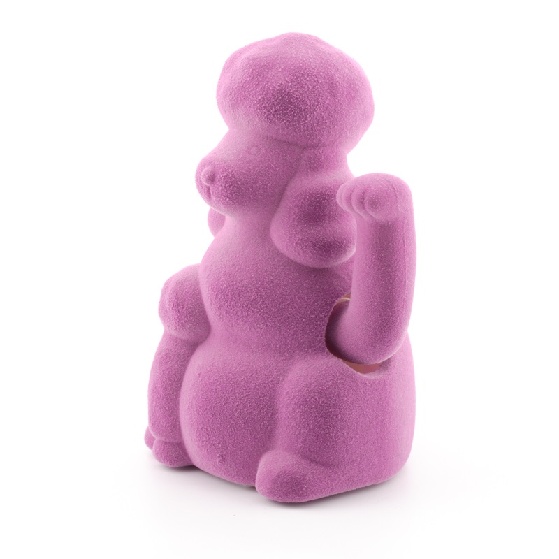 Deze paarse poedel heeft een zachte, fluwelen uitstraling en een speels ontwerp.
