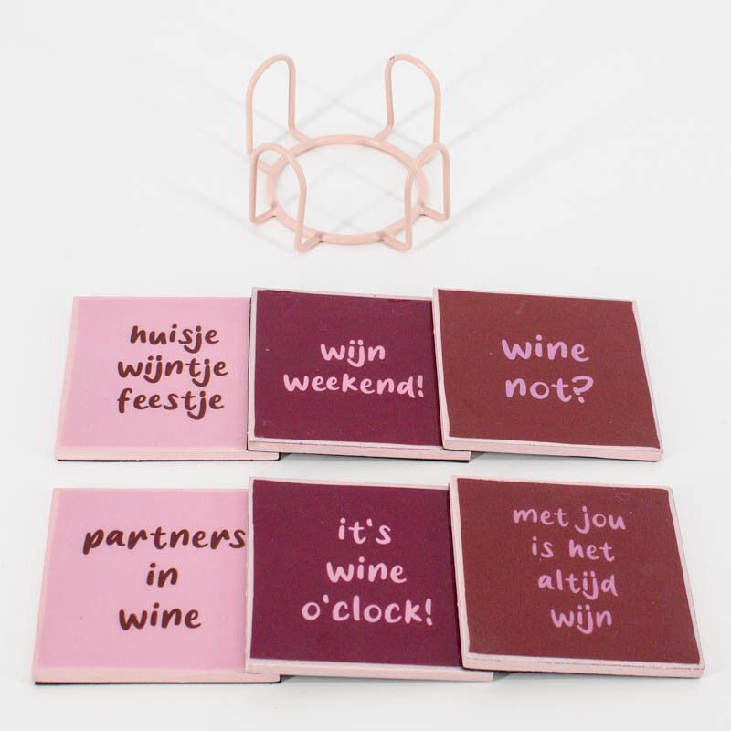 Set van 6 onderzetters met rekje 'Wijn'