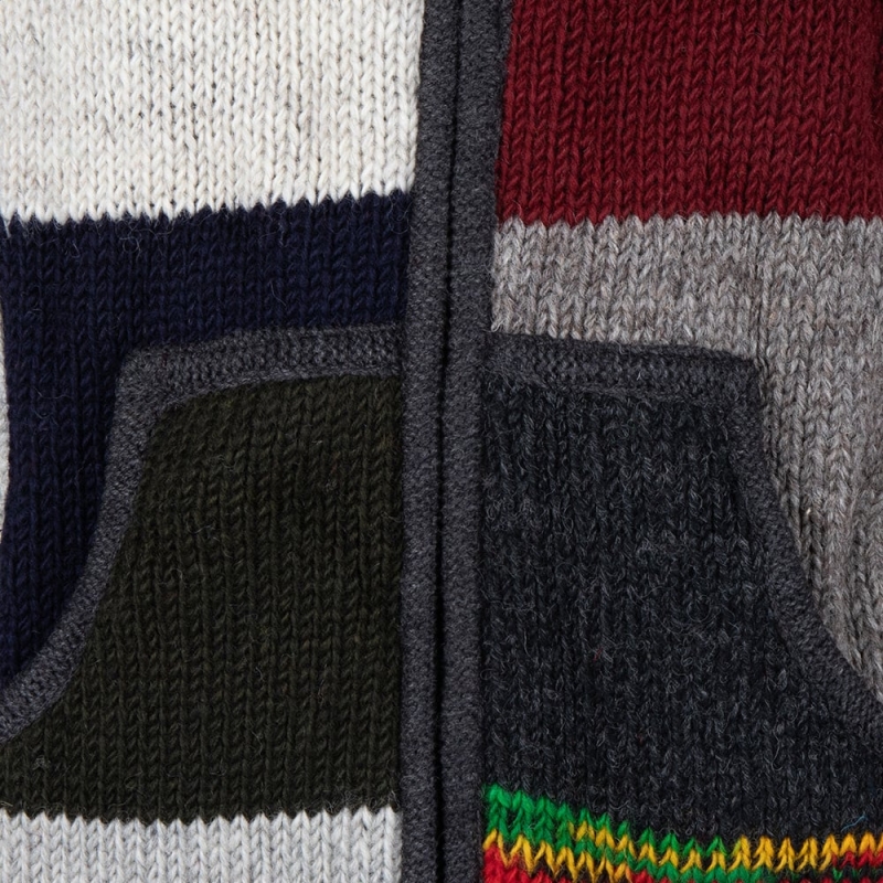 Dit bonte Patchwork wollen herenvest bestaat uit verschillende kleuren en patronen vlakken en heeft een binnenkraag, een vaste capuchon, kangaroozakken en een afsluitbare binnenzak. Dit geliefde vest van Shakaloha is geheel gevoerd met warme fleece zowel op de body, bij de mouwen, in de zakken en de kraag en capuchon. Het vest bestaat uit bonte kleuren en vlakken met natuurkleuren. Dit vest komt in de kleuren zoals op de foto, echter posities verschillen per vest.